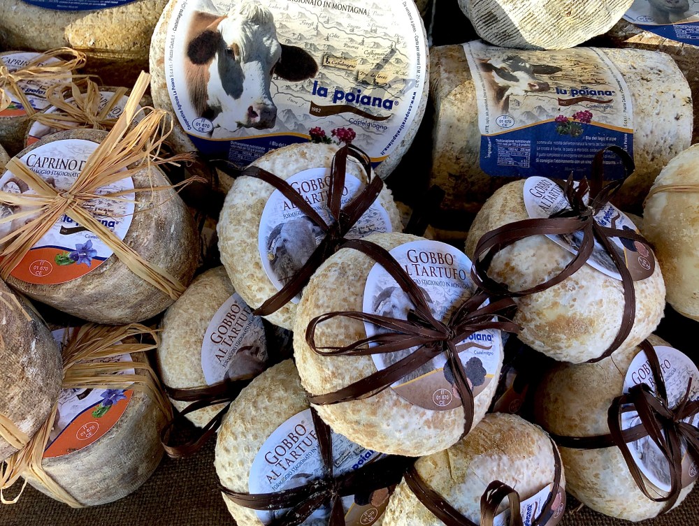 One of the first stalls I stopped at was piled high with a selection of cheeses produced by La Poiana, a cooperative established in 1982 with the specific aim of maintaining and promoting the production of Castelmagno cheese, one of Piemonte’s most unique cheeses and one that is often served with potato gnocchi. Castelmagno is a dense cheese with no open holes tending towards a grainier, crumbly texture and covered with a thin reddish-yellow rind which turns wrinkly and brownish-ochre as the cheese matures. The chunk I purchased will be making it’s way into a risotto with Castelmagno and pumpkin over the weekend!