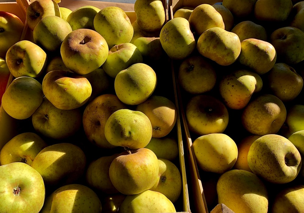For me, one of the nicest things about going to a farmer’s market is the seasonality of what’s available, a reminder that once upon a time we didn’t rely upon the transportation of fruit and vegetable from half way across the world – literally. This means that you can go shopping not quite knowing what you might come home with! This week’s big thing was apples, piled high in boxes and squeezed into delicious juice. I bought some of these ones, grown by Paolo Ghiglia and family on the slopes of the ancient Monte di Vico, now Mondovi Piazza. By the late afternoon they had been transformed into a delicious, moist Italian apple cake or torte de mela.