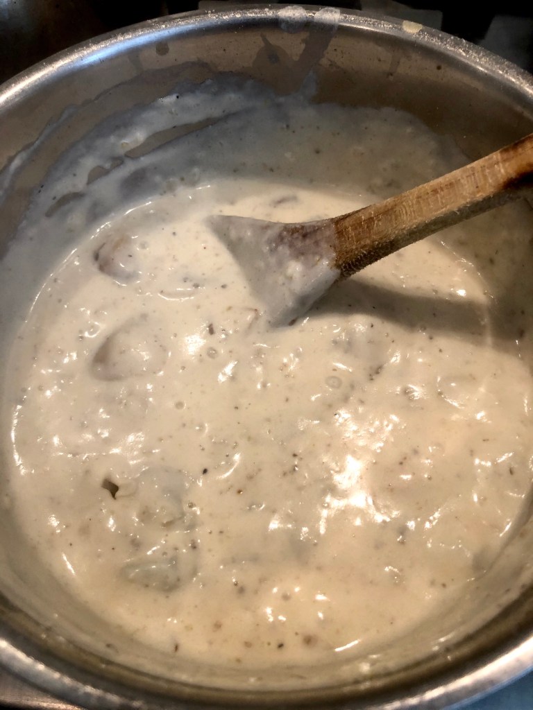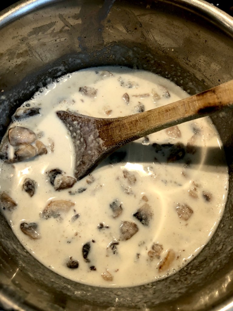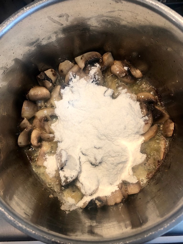 Make the sauce by chopping the mushrooms and frying off in the butter before adding the flour. Cook through for a couple of minutes, stirring all the time then add the milk and mix until smooth. Bring to the boil to thicken before adding the Gorgonzola cheese and parsley and season well. Then add the roasted cauliflower without spices. Turn into an ovenproof dish and finish off in the oven for 15 minutes until bubbling and golden.
