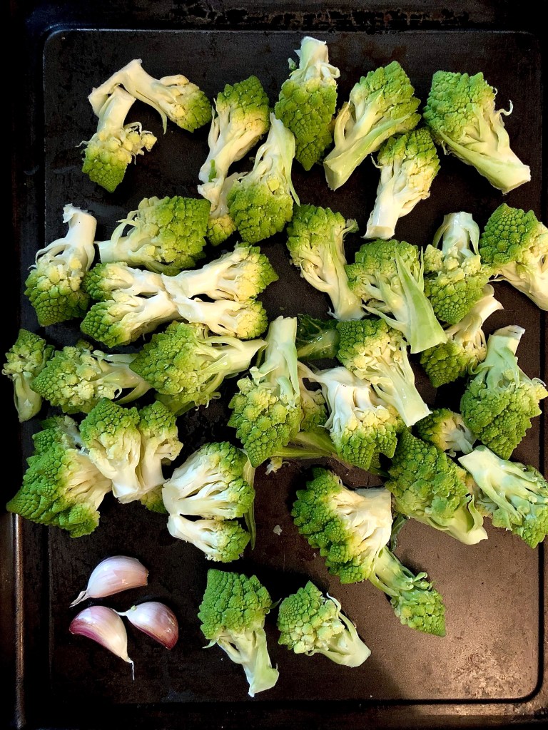 First break the cauliflower into florets. Jenny’s recipe suggested boiling it but I prefer to roast all my vegetables as I think it makes for a better flovour, texture and vitamin content so that’s what I did this time. Basically just pop the cauliflower florets on a baking tray with a drizzle of olive oil and some salt and pepper. If you roast the garlic cloves this also deepens the flavour. Place in a hot oven for 20 mins until soft and lightly brown. Leave to cool.