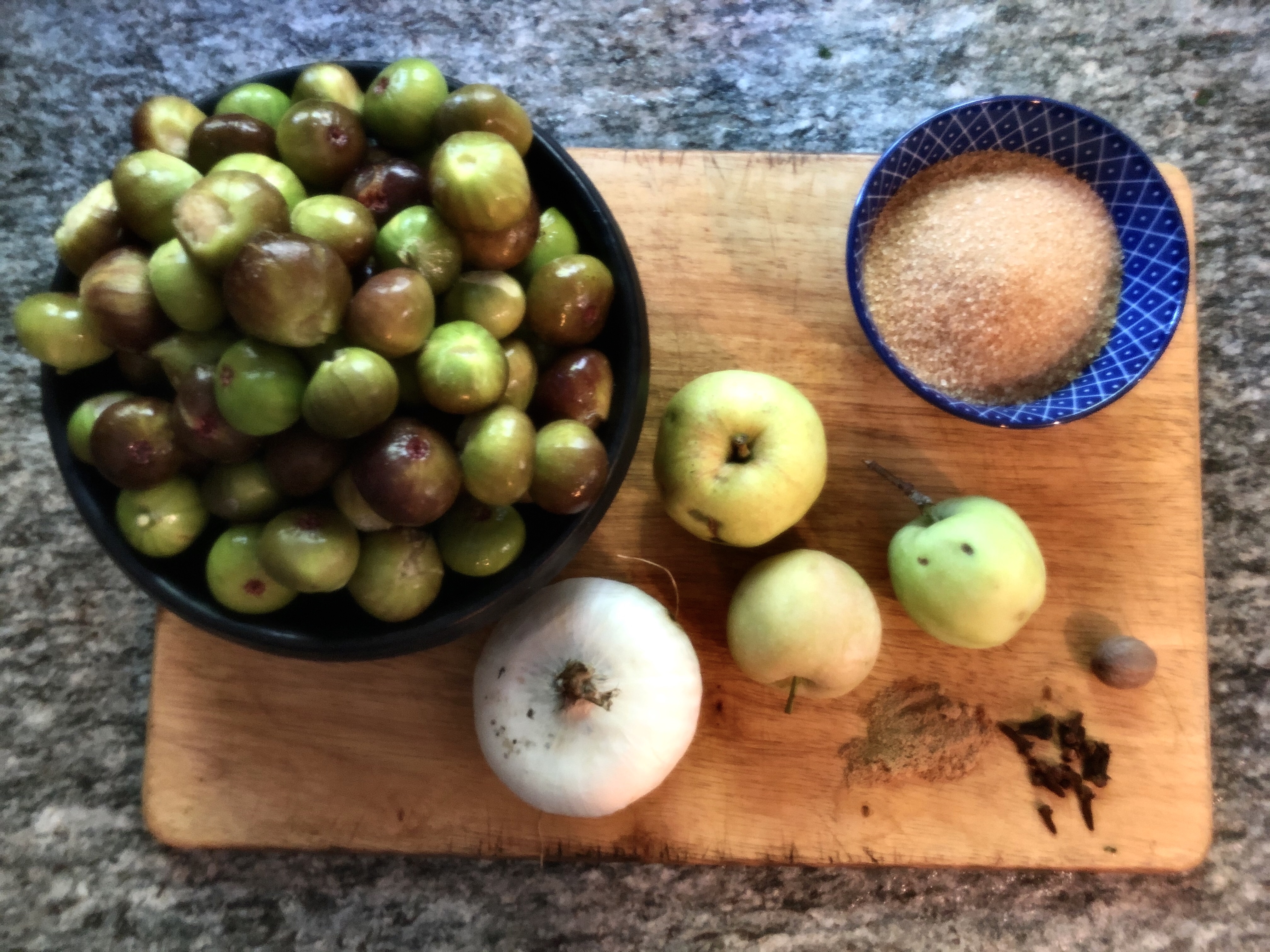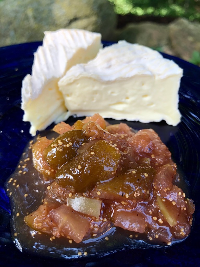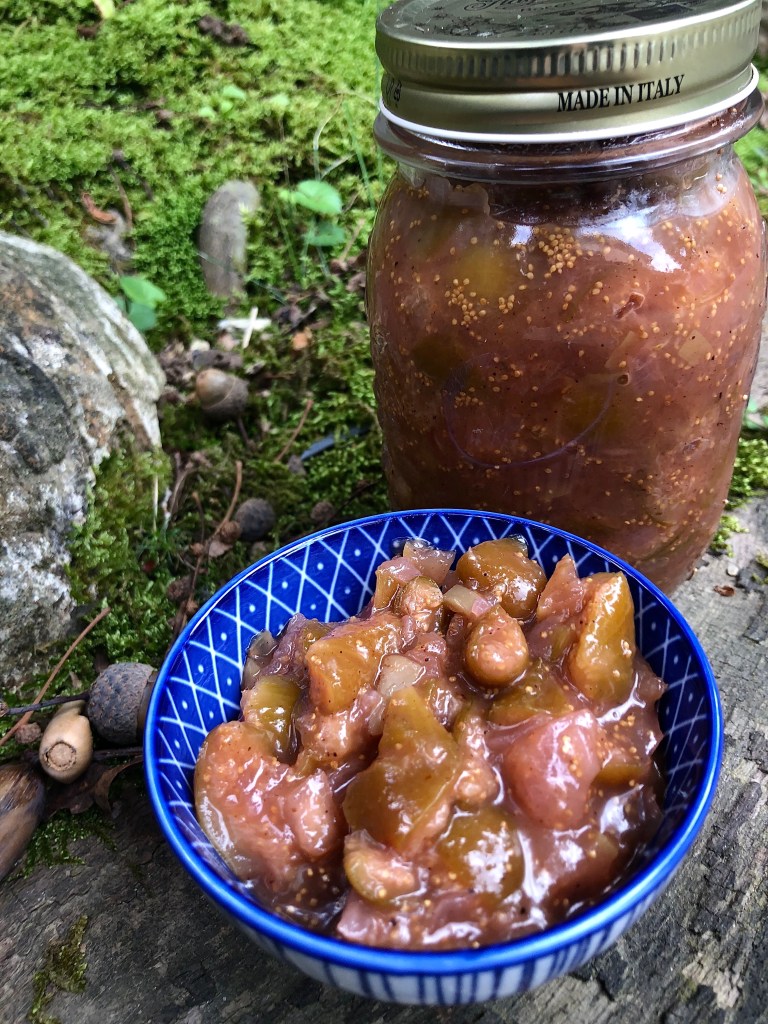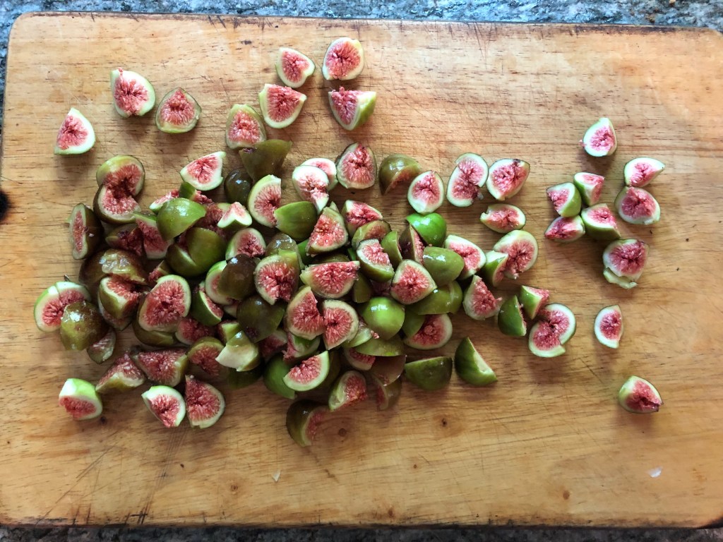 One of the wonderful things about living in Italy is that the foraging opportunities are very different from those I’m used to in the UK. Over the last few months I’ve been keeping my eye on a large fig tree at the top of a field near our house. This week there were enough ripe fruits to make a couple of jars of foraged fig chutney, perfect served with cheese. I added a couple of apples picked from a tree on the way down the hill for additional texture and taste.