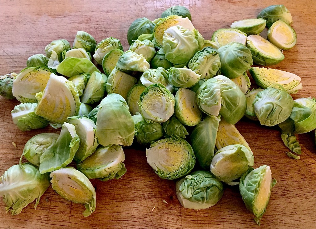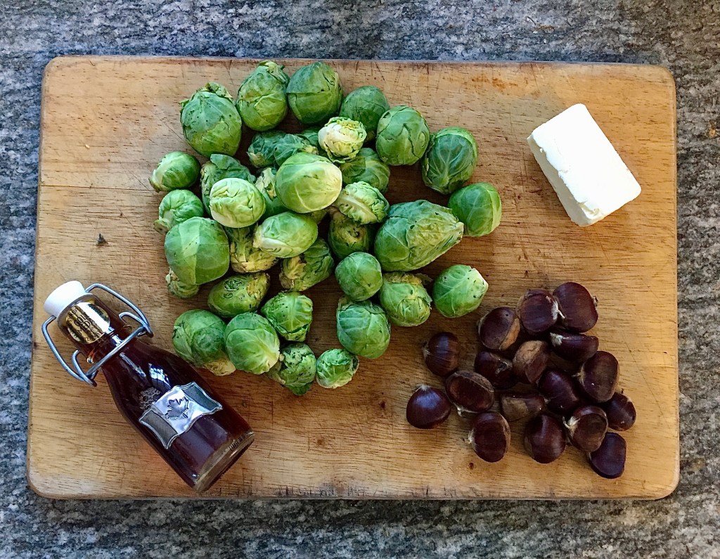 Remove the outer skins from the Brussels sprouts and cut in half. Roughly chop the chestnuts.