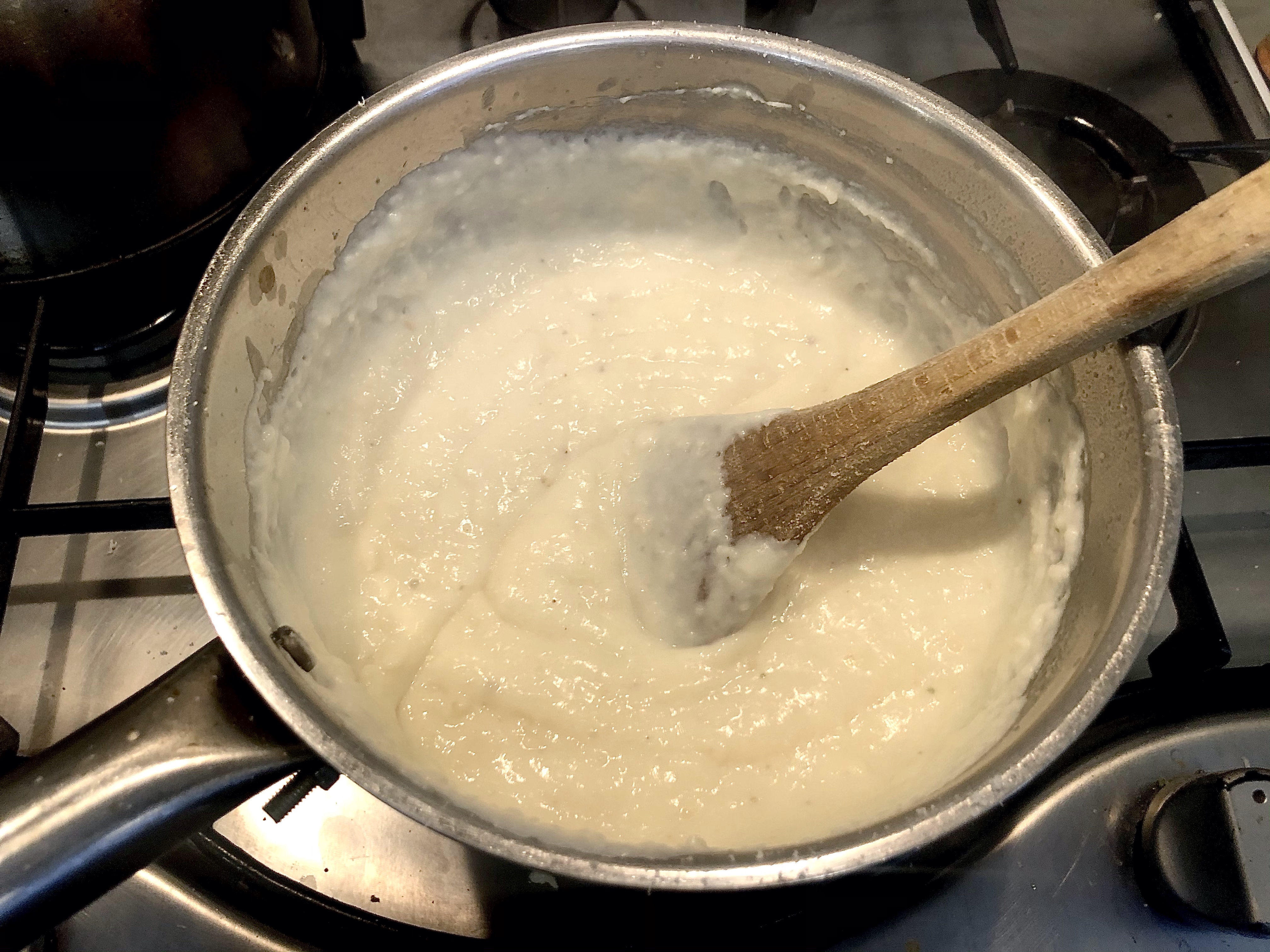 While the dough is resting you can prepare the sauce. Melt the butter in a saucepan and then mix in the flour. Cook for 3-4 minutes stirring occassionally then slowly add in the milk whisking all the time to prevent the sauce from becoming lumpy.