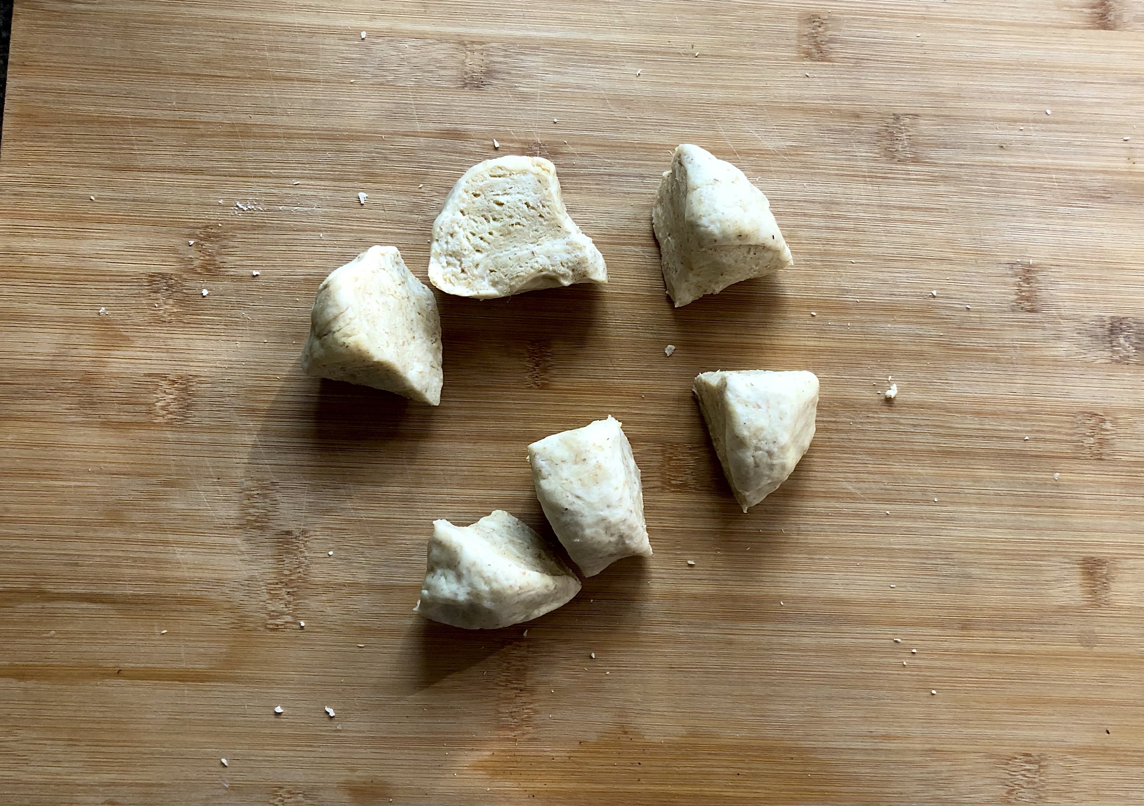 Turn onto a board and gently knead until the pastry is smooth in texture then cut into six pieces, roll into balls and place in the fridge to rest whilst you make the filling.