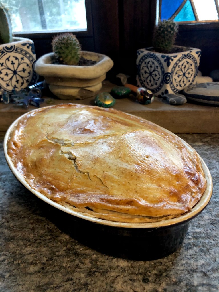 Once all the sheets are added you can fold any leftover pastry up around the edges and then brush the pie with milk or beaten egg. Place in a hot oven (around 200C) for around 30 minutes or until the pie is golden brown and firm to the touch. Serve hot with Spring vegetables or cold as part of a picnic or with a salad.