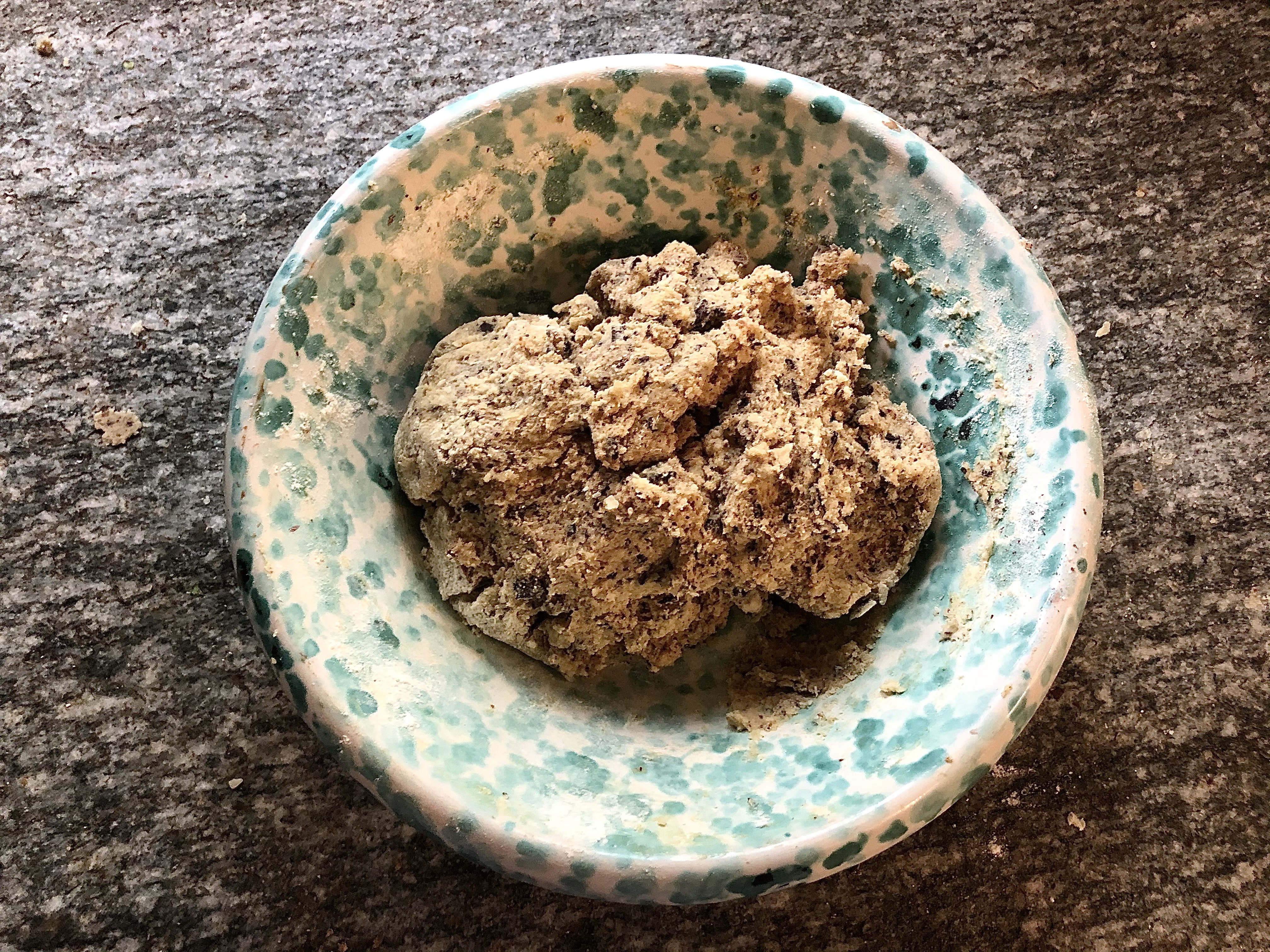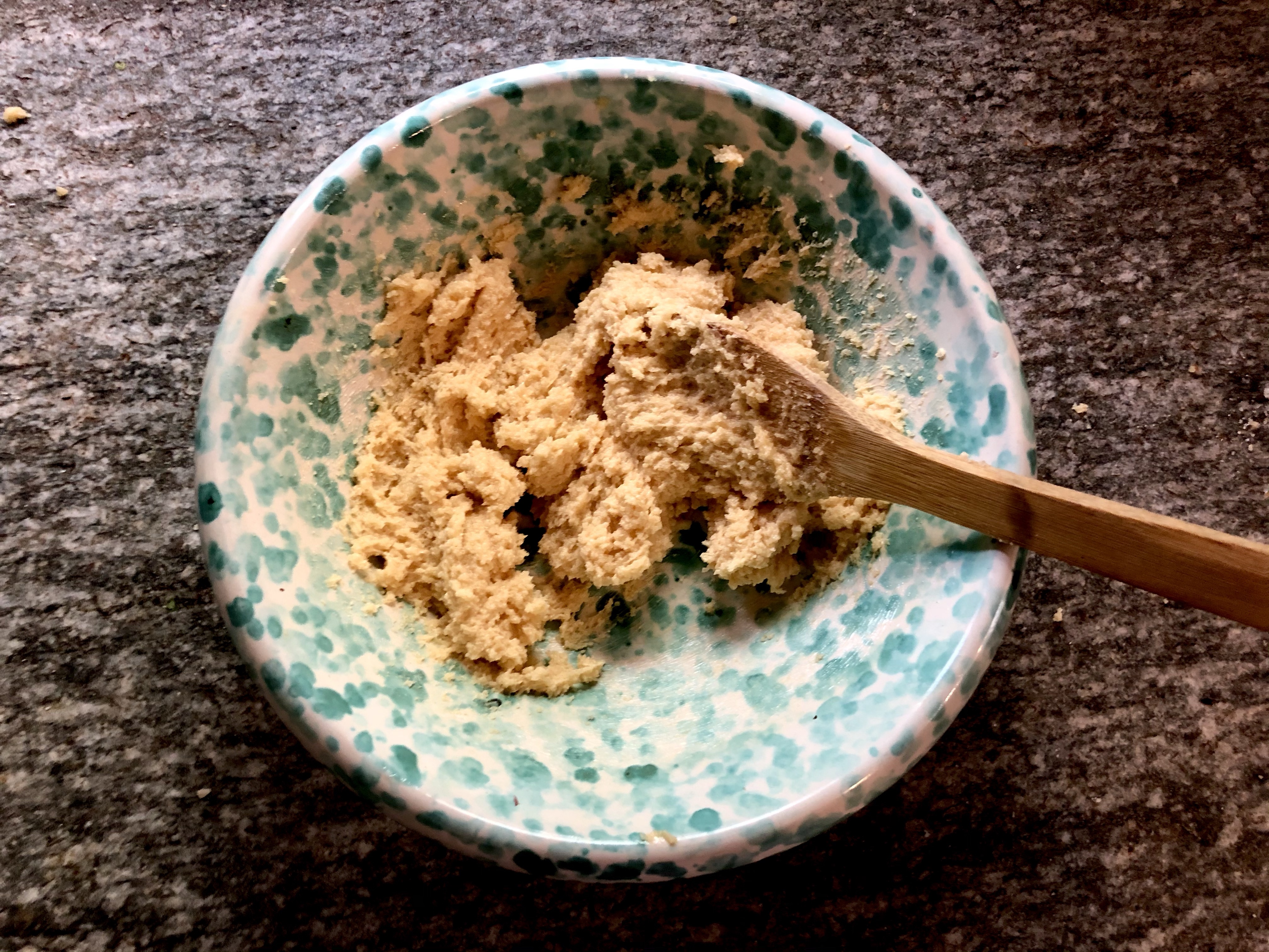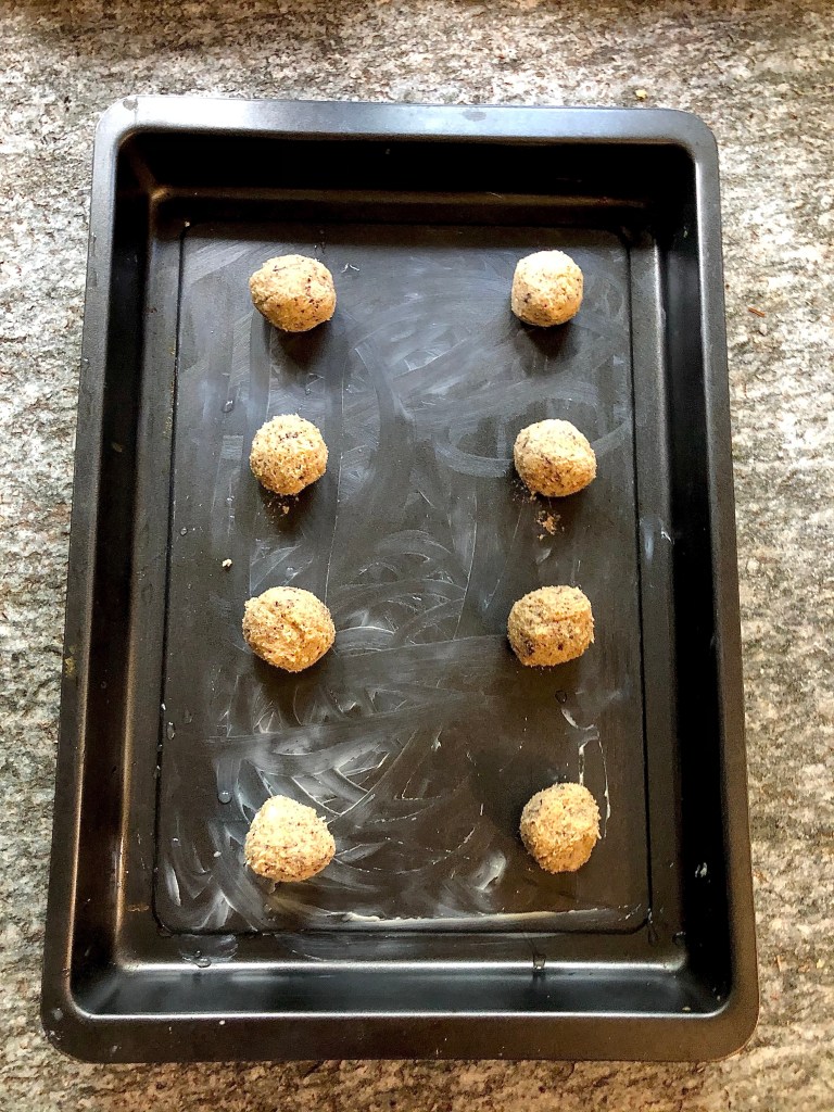 Roll the mixture into balls about the size of a walnut and place on a greased making tray making sure that you leave enough room for them to spread out. I had enough dough for 30 medium sized cookies. Place the tray in a pre-heated oven (180C) for 7 to 10 minutes depending how soft or crispy you like your cookies.